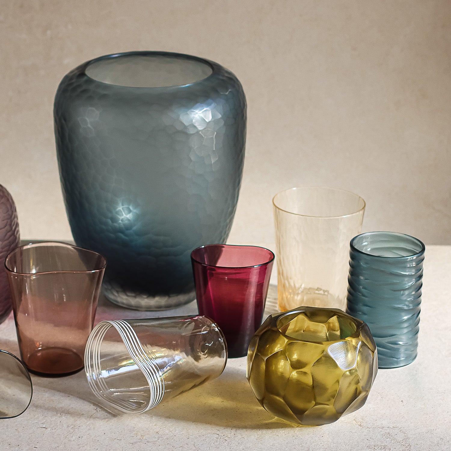 Micheluzzi Glass is a unique collection of vases and glassware designed by Elena & Margherita Micheluzzi handcrafted in Murano, the island of glass in the Venetian lagoon.