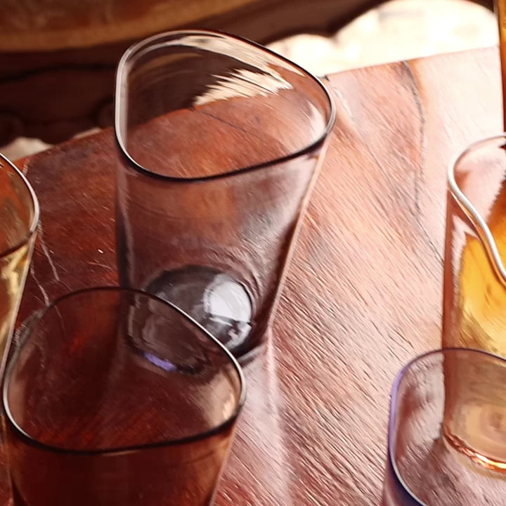 The unique wavy forms of our Mosso glasses are crafted entirely freehand during the blowing
