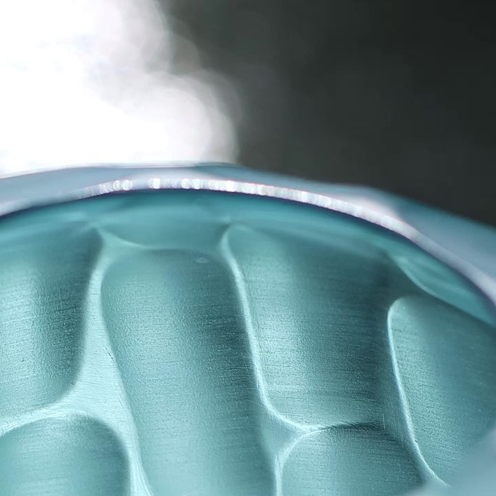 Usually cold carving is process used to get rid of the cutting edges of the glass during the finishing phase, but can also be used as decorative tool. The different carvings make the tactile experience one of a kind, also allowing the light to play with the glass surfaces, reflecting colours in a unique way.